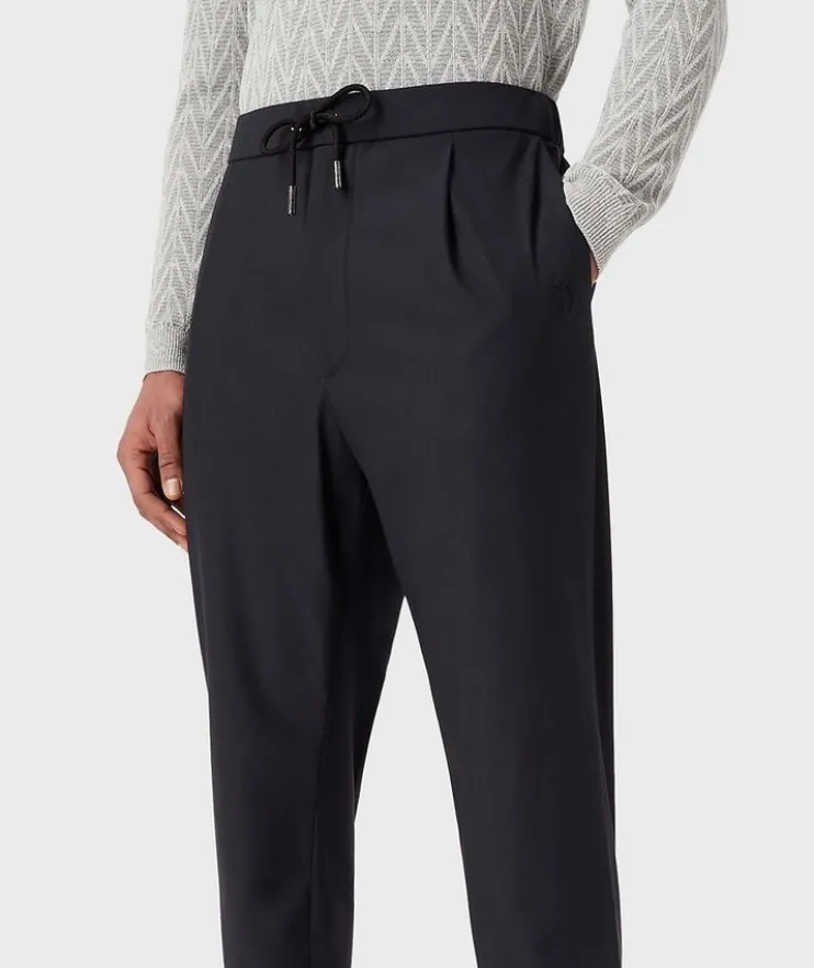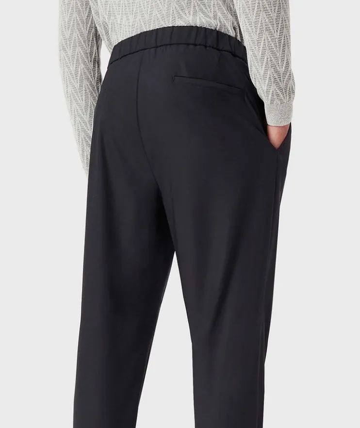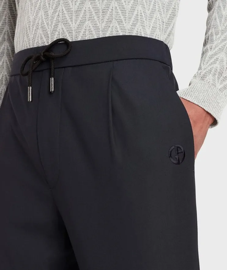 - These dress pants by Giorgio Armani are defined by a style that is sophisticated and relaxed at the same time. Crafted in stretch wool canvas, these trousers feature a practical drawstring, contrasting embroidered GA logo, and two side pockets that highlight their urban spirit.