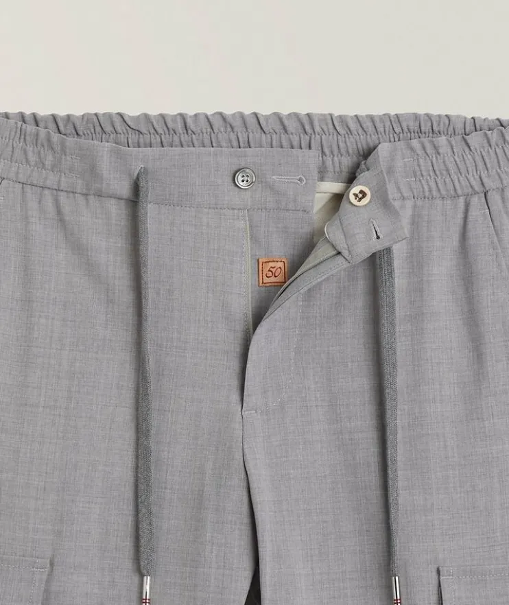 - Crafted in a comfortable smooth wool crêpe with generous stretch, these on-trend cargo pants add a modern element to any casual ensemble. Finished with clean lines and a drawstring waist for a refined yet laidback look.