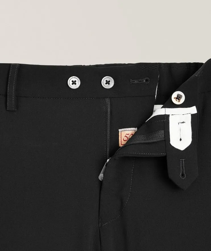 - An example of timeless Italian craftsmanship, these sophisticated pants feature a slightly tapered leg with a wool-blend crêpe finish to create a fluid silhouette. A classic and elegant addition to any gentleman’s closet.