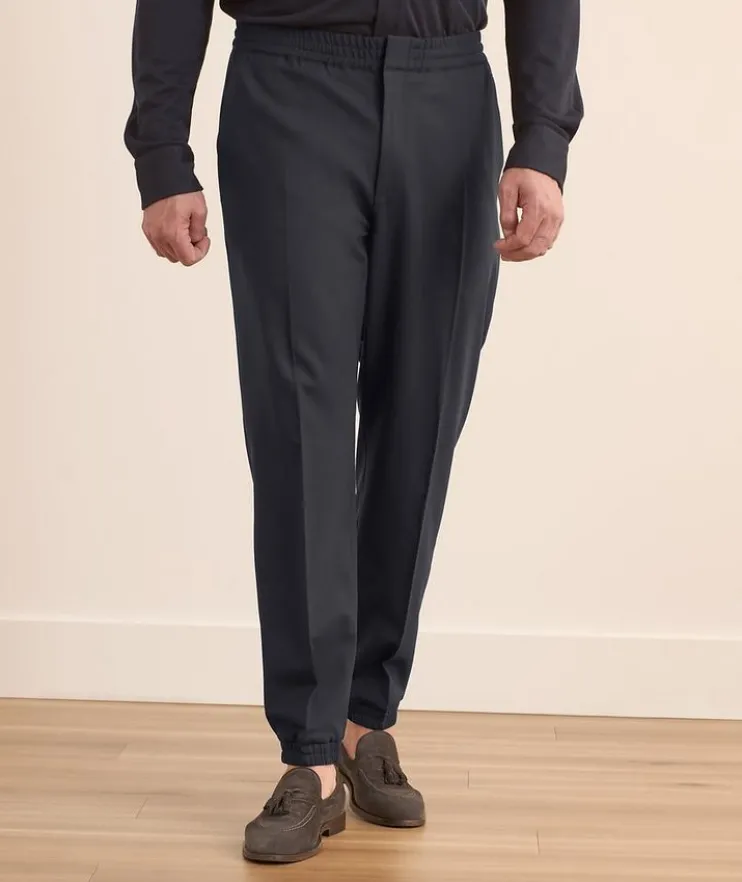 - Synonymous with luxurious leisurewear, these versatile jogger pants are tailored from lightweight, breathable Italian wool with a touch of stretch. Finished with an elasticized waist and cuffs, these smart casual pants maintain a refined appearance with maximum comfort and freedom of movement.