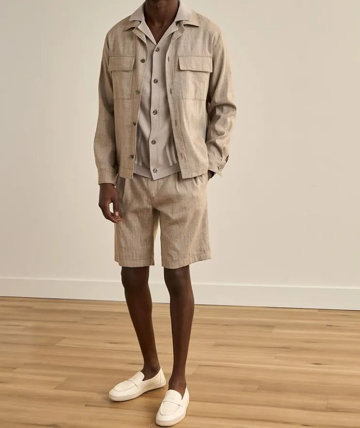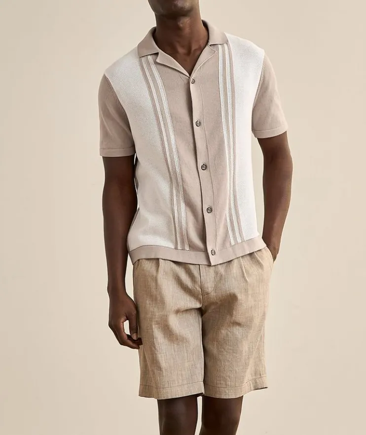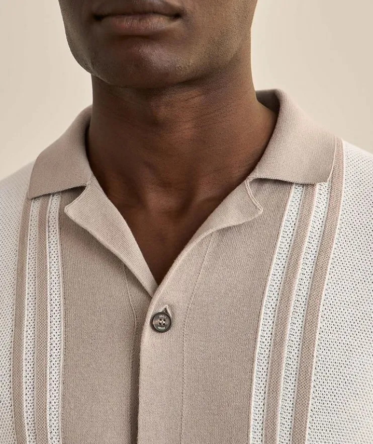 - Contrasting knit finishes add a modern twist to this classic striped shirt, while short sleeves and logo detailing lend a casual element.