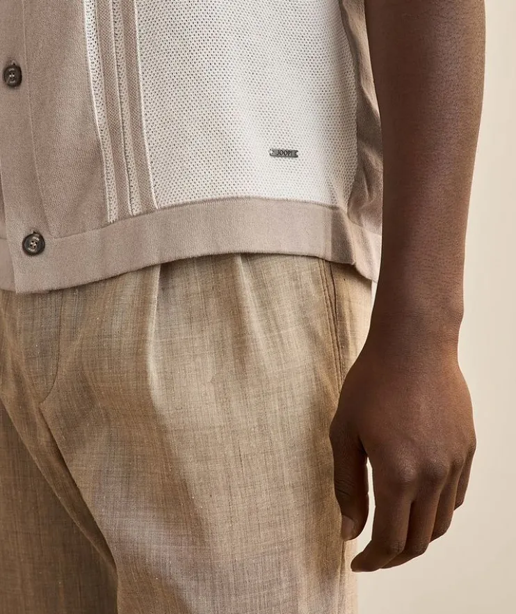 - This knit shirt has been crafted in a slim fit, designed to sit close against the body.