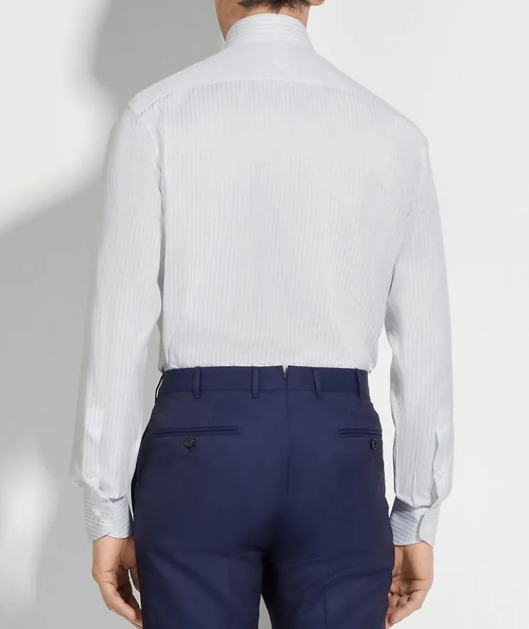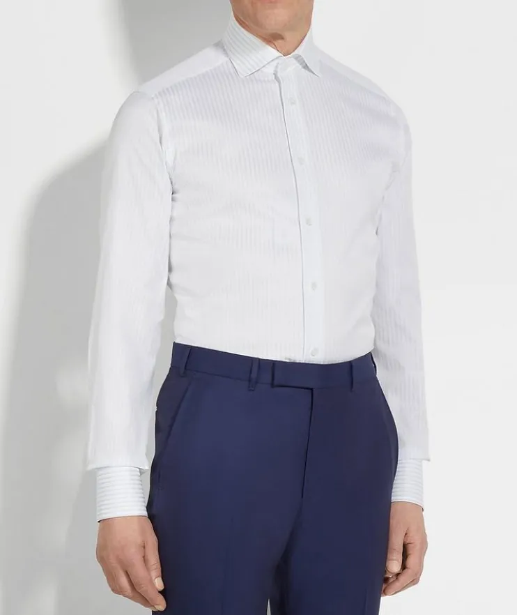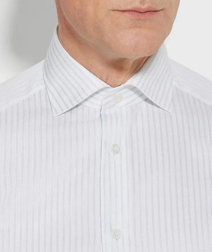 - Bringing fresh charm to formal looks with a striped patten, this shirt is crafted from luxurious Centoventimila cotton for an impeccably smooth, breezy feel. Its long-sleeved silhouette is styled with a spread collar and a rounded hem.