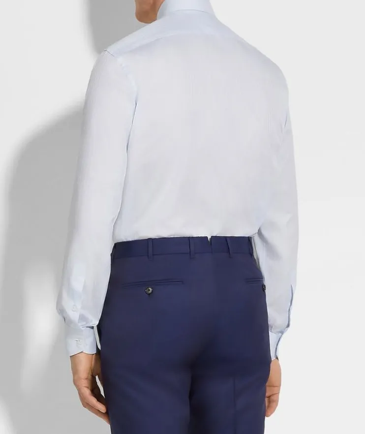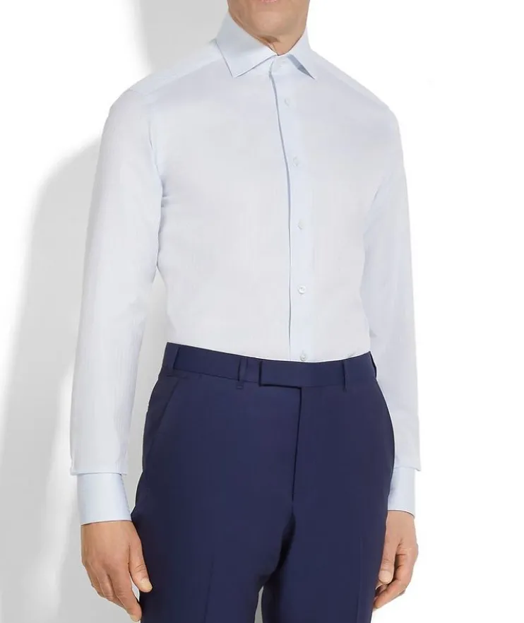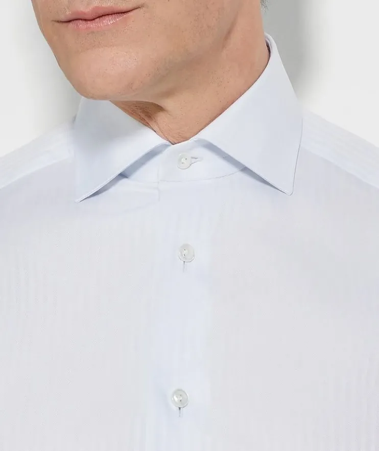 - Bringing fresh charm to formal looks with a striped patten, this shirt is crafted from luxurious Centoventimila cotton for an impeccably smooth, breezy feel. Its long-sleeved silhouette is styled with a spread collar and a rounded hem.