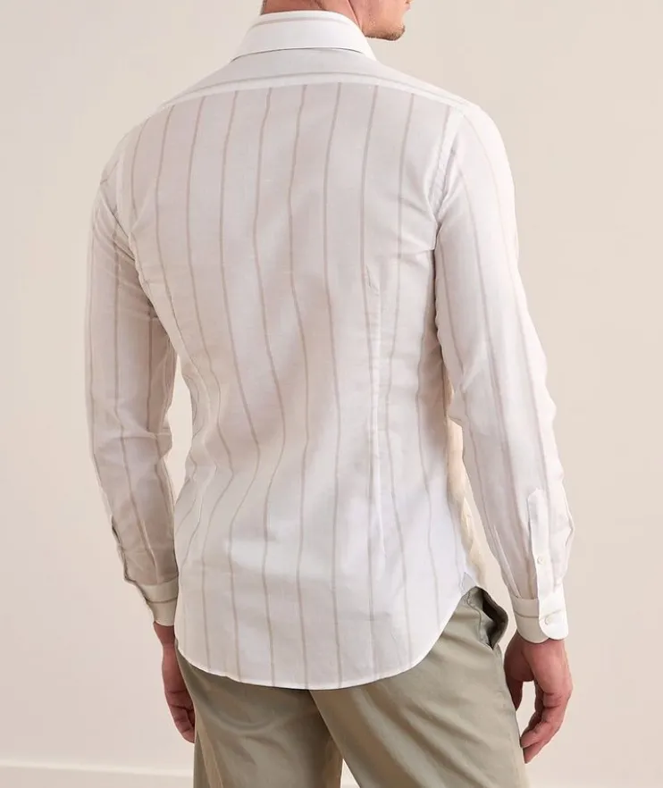- A versatile wardrobe essential, this striped shirt is crafted from a blend of lightweight cotton and linen and is perfect for both the office and casual outings.