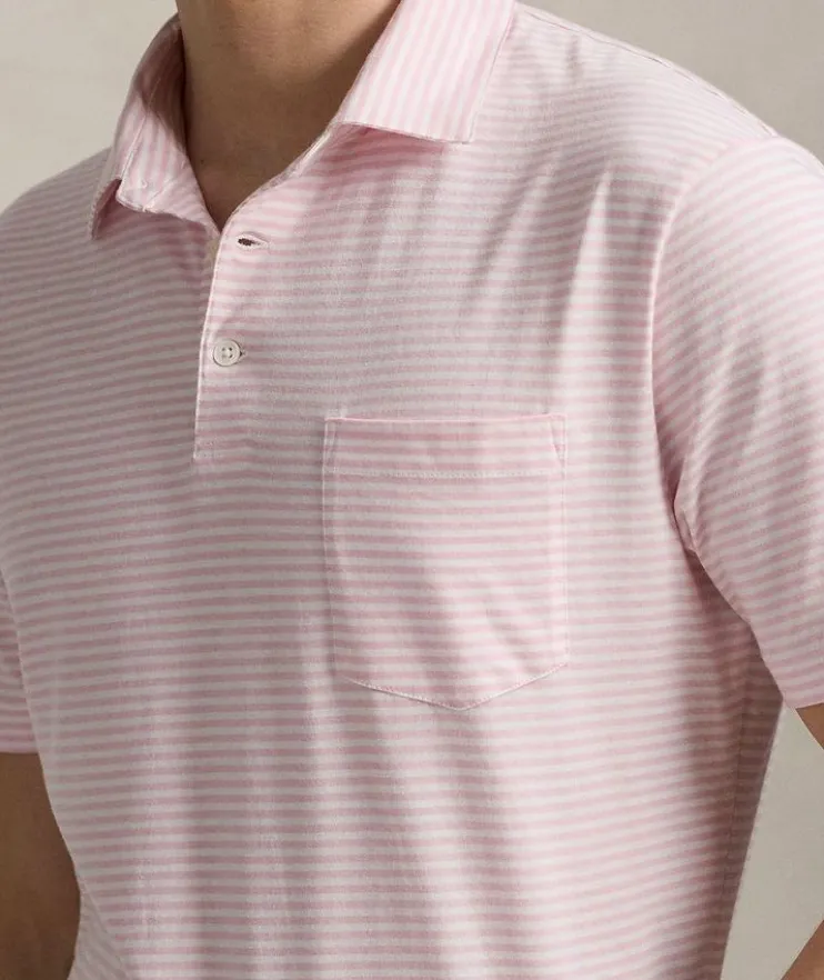 - An elevated basic for casual dressing, this short-sleeved polo shirt is crafted from smooth cotton and finished with a classic striped design and pocket detail.