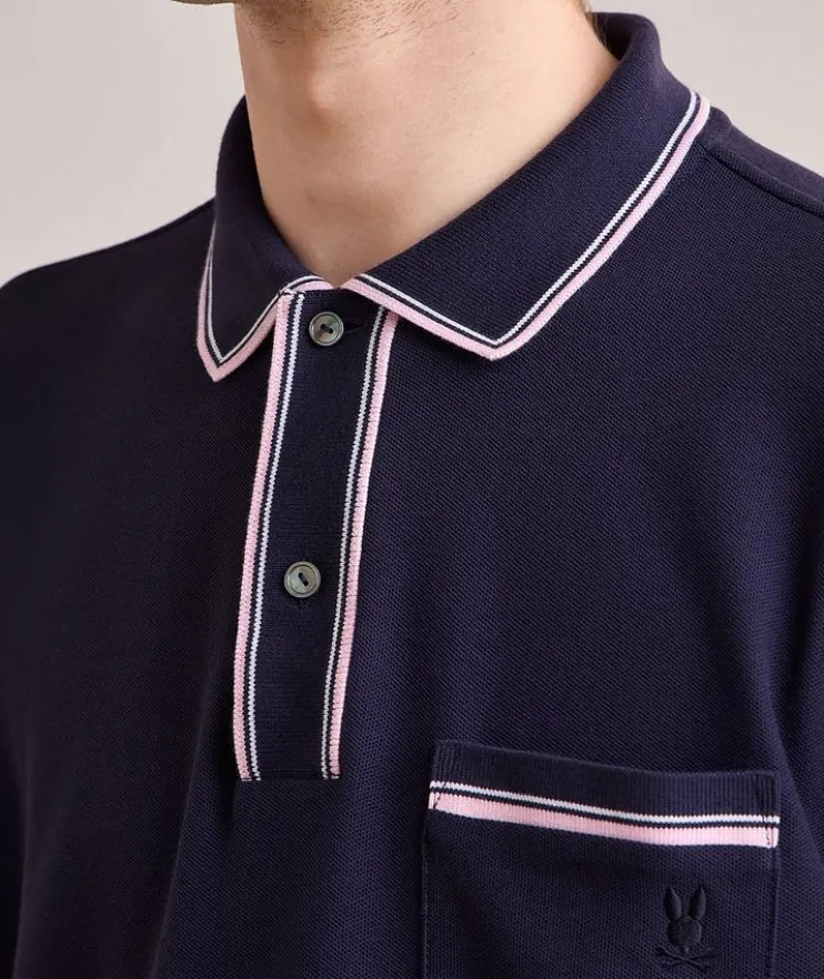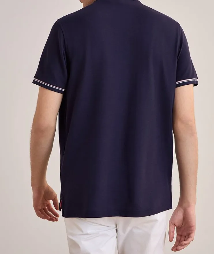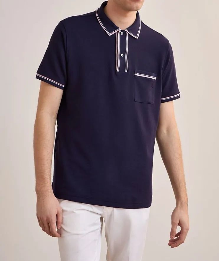- Boasting striped trim detailing, this cotton piqué polo adds a modern sporty element to elevate any ensemble.