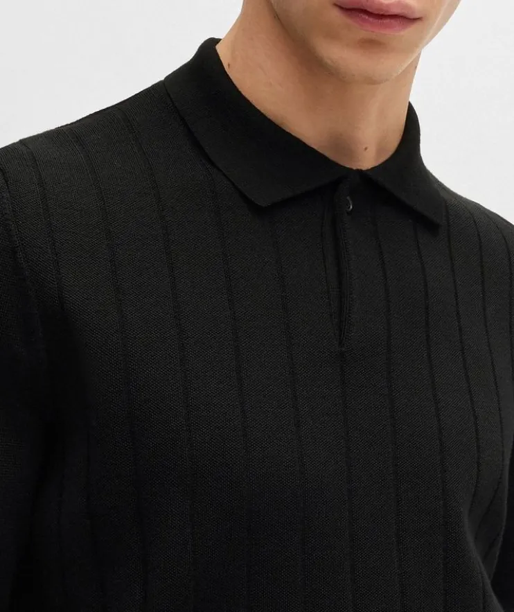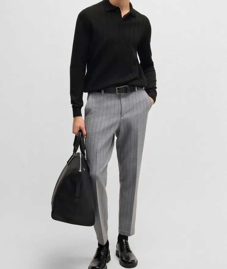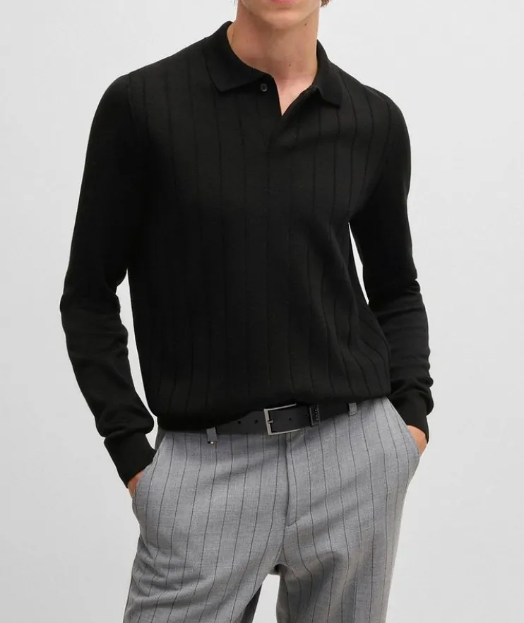 - A polo-collar sweater knitted with vertical stripes by BOSS Menswear. This regular-fit layer is crafted in wool.