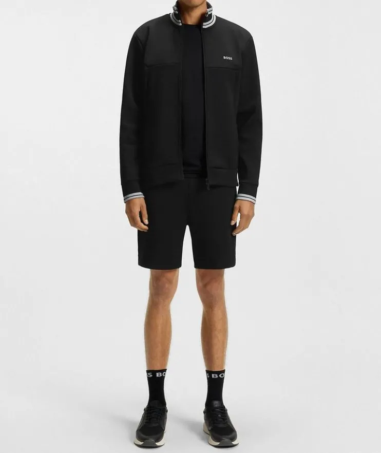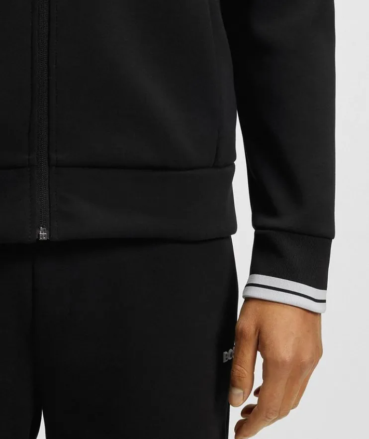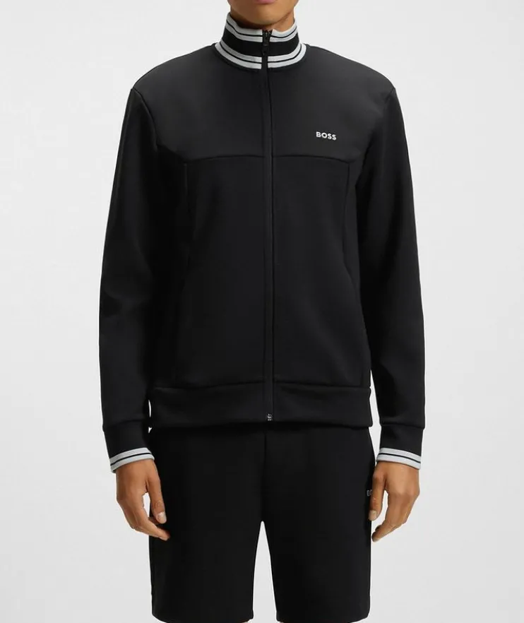- Crafted from a breathable cotton blend in a straight fit, this laidback sweatshirt features a zipper fastening and striped details for a contemporary sporty aesthetic.