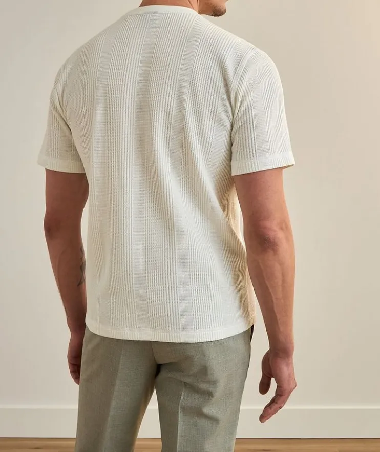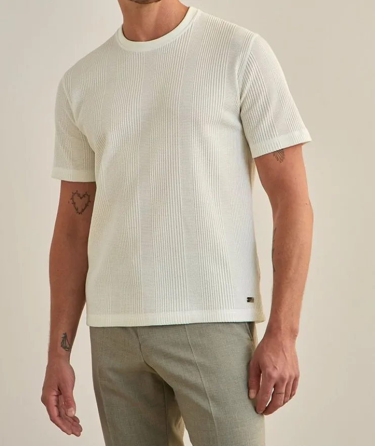 - This classic crewneck T-shirt is crafted from breathable cotton with an alternating knit finish, making it an elevated wardrobe staple.