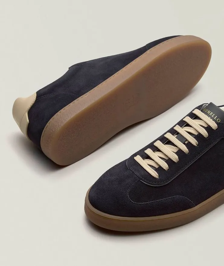- Refined materials and artisanal workmanship enhance these washed suede sneakers, perfect for work or weekend. Leather lining completes the comfort of the footwear, together with a compact, lightweight rubber sole.