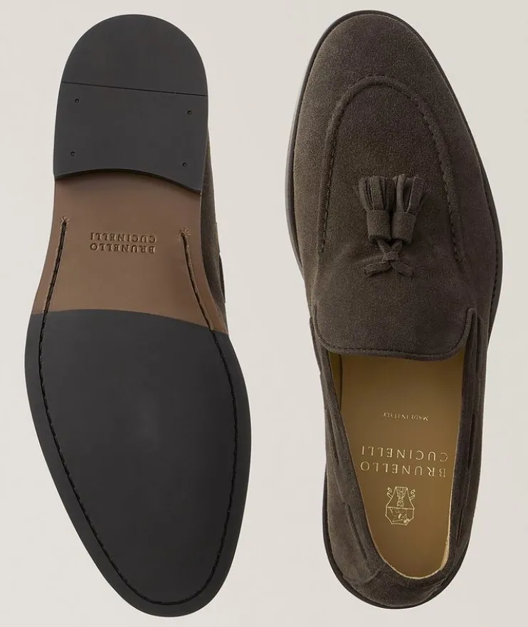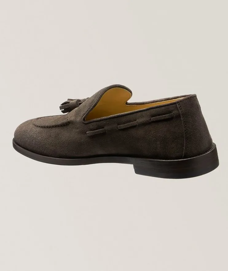 - Refined loafers crafted from velvety suede for a softer look and finished with casual tassel detailing.