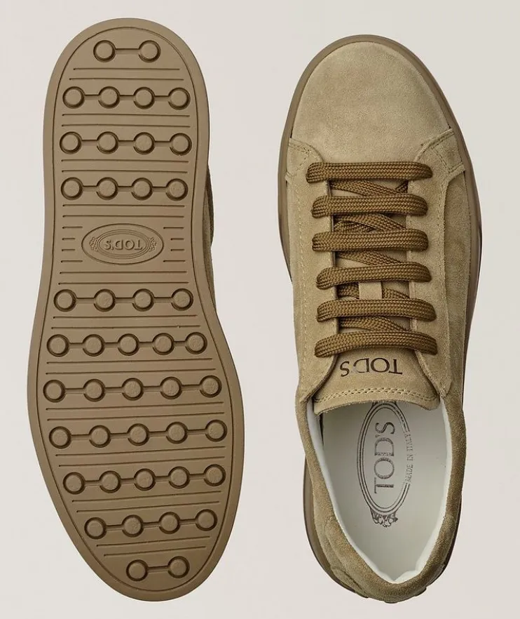 - Designed in Italy with exceptional craftsmanship, these minimalist sneakers in soft suede feature a rubber outsole with embossed pebbles. This style fits wide, we recommend selecting a half size down.
