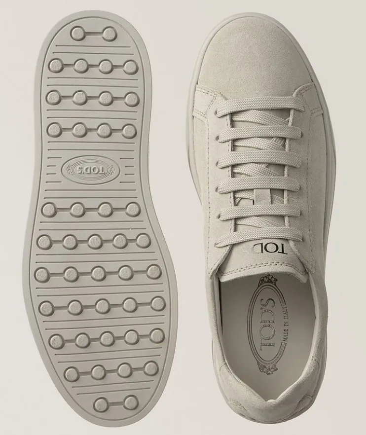 - Designed in Italy with exceptional craftsmanship, these minimalist sneakers in soft suede feature a rubber outsole with embossed pebbles. This style fits wide, we recommend selecting a half size down.