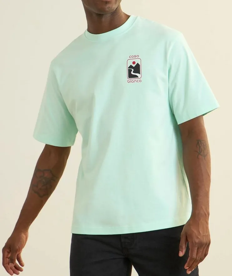 - A weekend styling essential, this crewneck T-shirt is crafted from breathable organic cotton and features a Japanese-inspired artwork design from front to back.