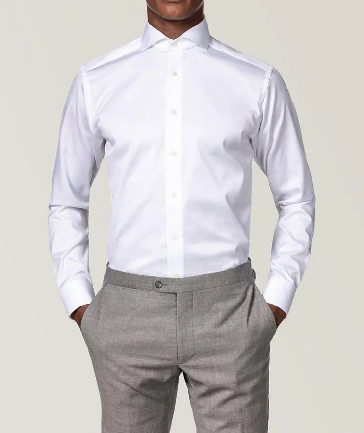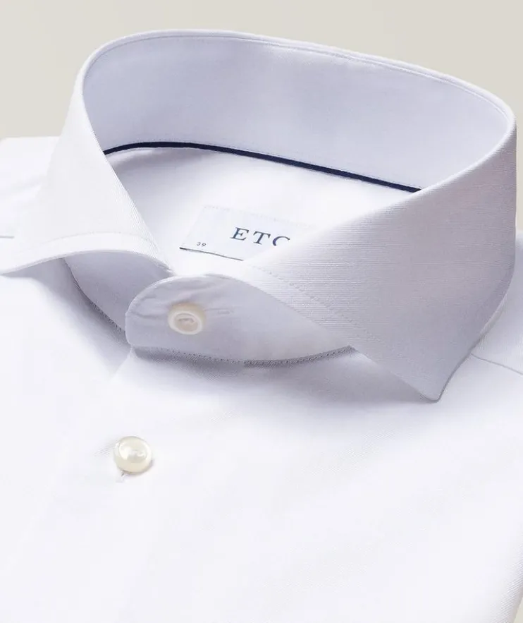 - Complete sleek tailored ensembles with this pristine cotton shirt from Eton. The crisp white design is constructed with an extreme cutaway collar that nicely complements a robust neck tie. It’s cut in the Swedish label’s super slim fit for a streamlined look that’s unquestionably modern.