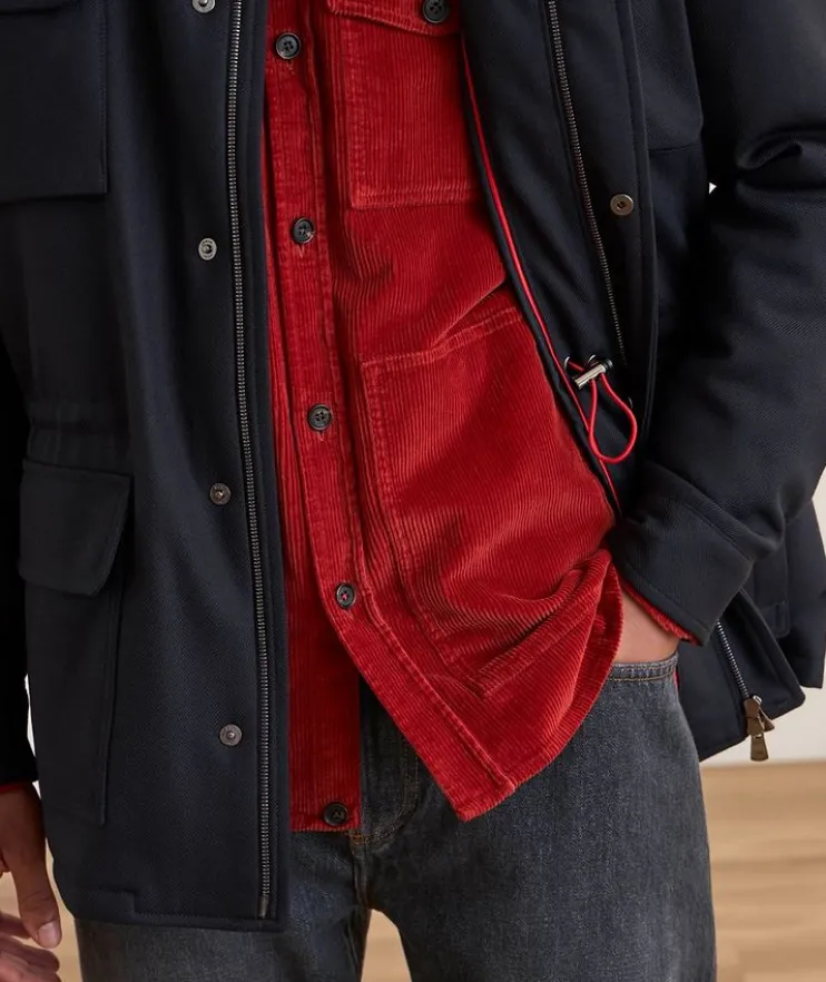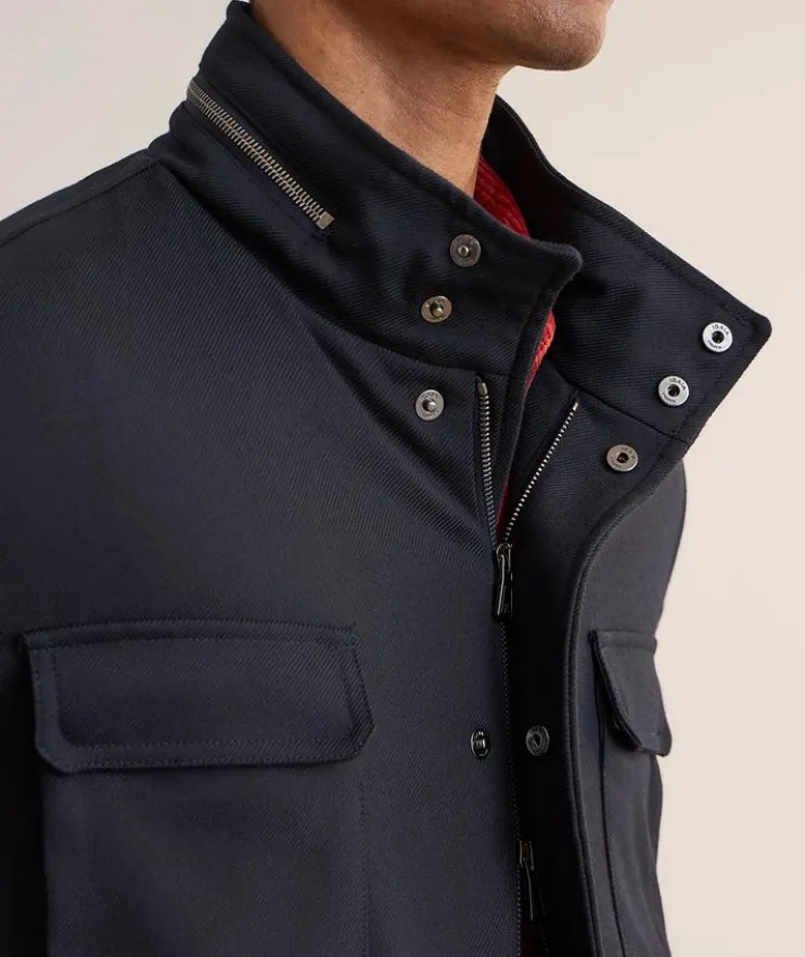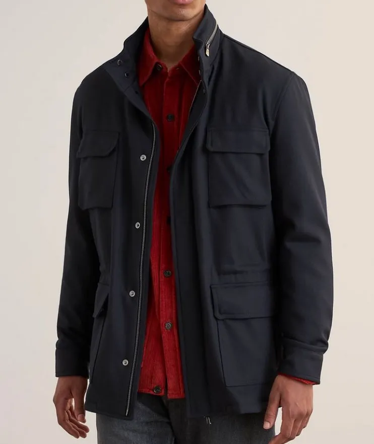 - A versatile design in premium tech wool-blend, this field jacket features a four-pocket silhouette with a tuck away hood. Interior pockets and a drawcord hem complete the modern-day style.