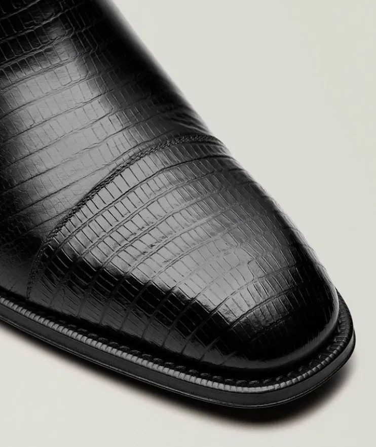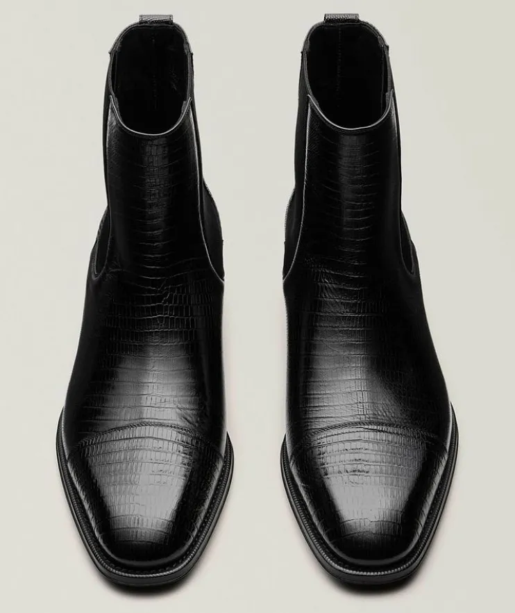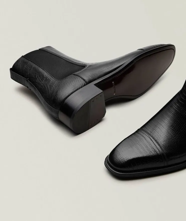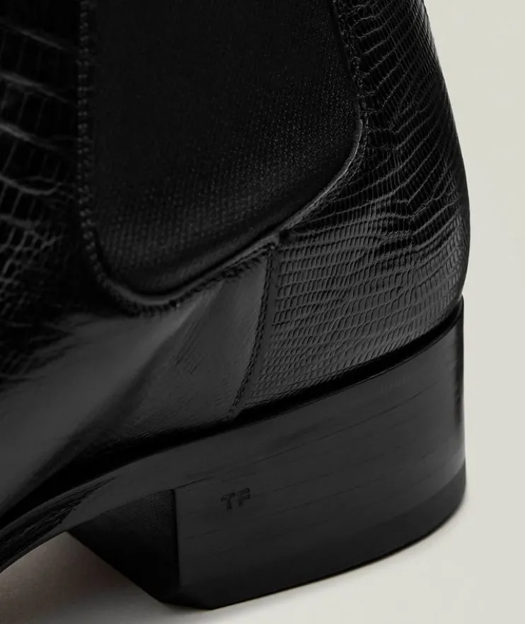 - Expertly crafted in Italy from high quality leather with a lizard-embossed finish, these sleek Chelsea boots boast modern elegance and timeless sophistication. A versatile choice that’s perfect for smart-casual and formal affairs alike.