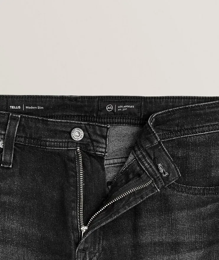 - A signature mid-rise waist with fitted upper block and tapered leg opening, this style is finished with subtle fading and a bit of stretch.