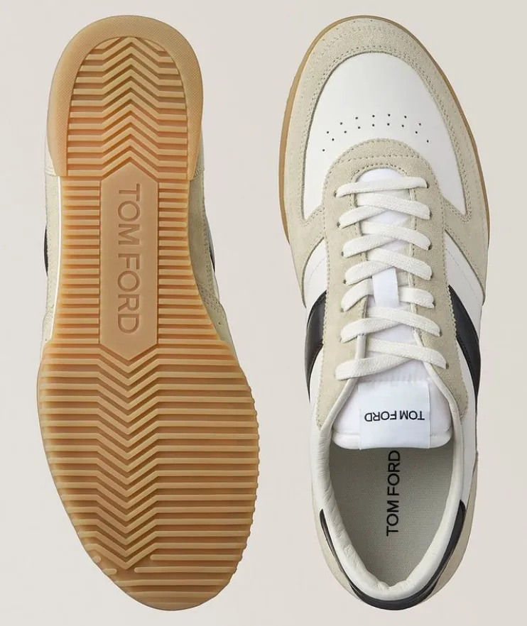 - These sporty-chic suede and leather sneakers are crafted in Italy featuring a sleek, low-top silhouette with logo details.
