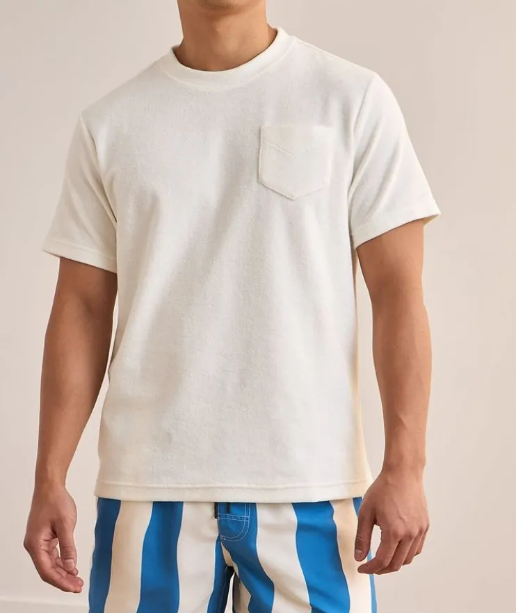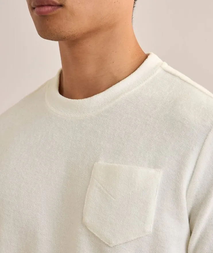 - Designed for warm weather dressing in a sumptuously soft and breathable cotton terry, this crewneck is cut to an endlessly versatile fit and finished with an embroidered chest pocket for a casual touch.