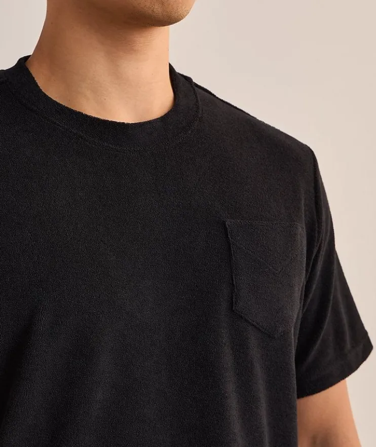 - Designed for warm weather dressing in a sumptuously soft and breathable cotton terry, this crewneck is cut to an endlessly versatile fit and finished with an embroidered chest pocket for a casual touch.