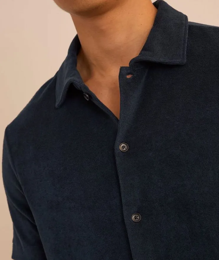 - Made from comfortable terry cloth, this polo provides breathable ease and multiple layering options with a button front closure. A classic shirt collar adds a refined touch, making it an ideal choice for weekend outings or smart-casual style.