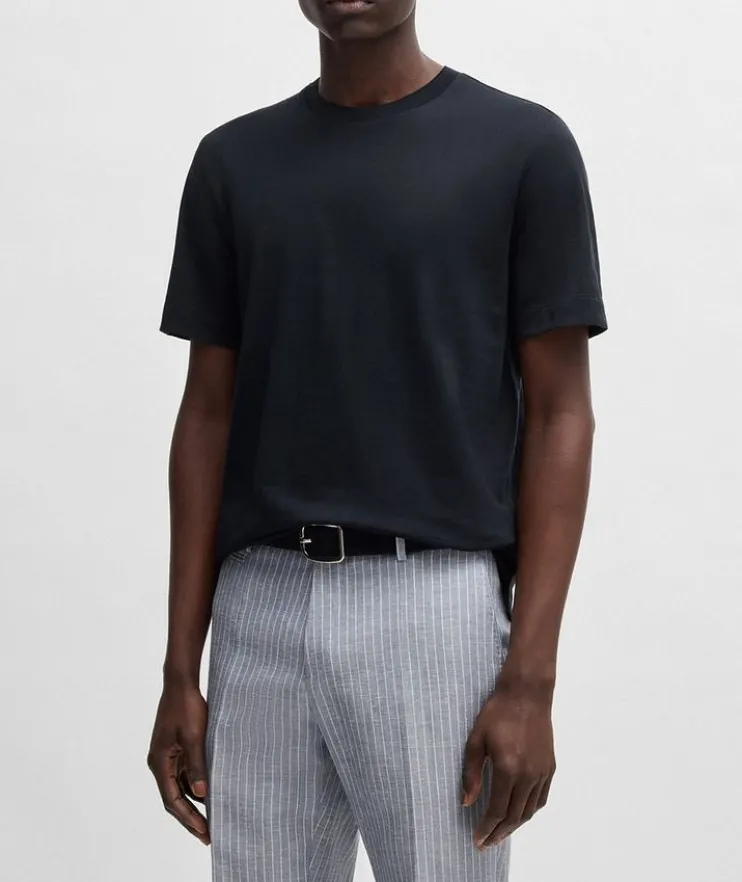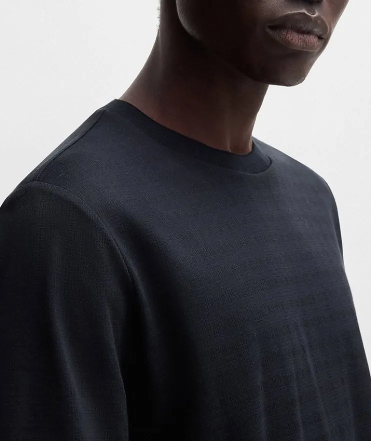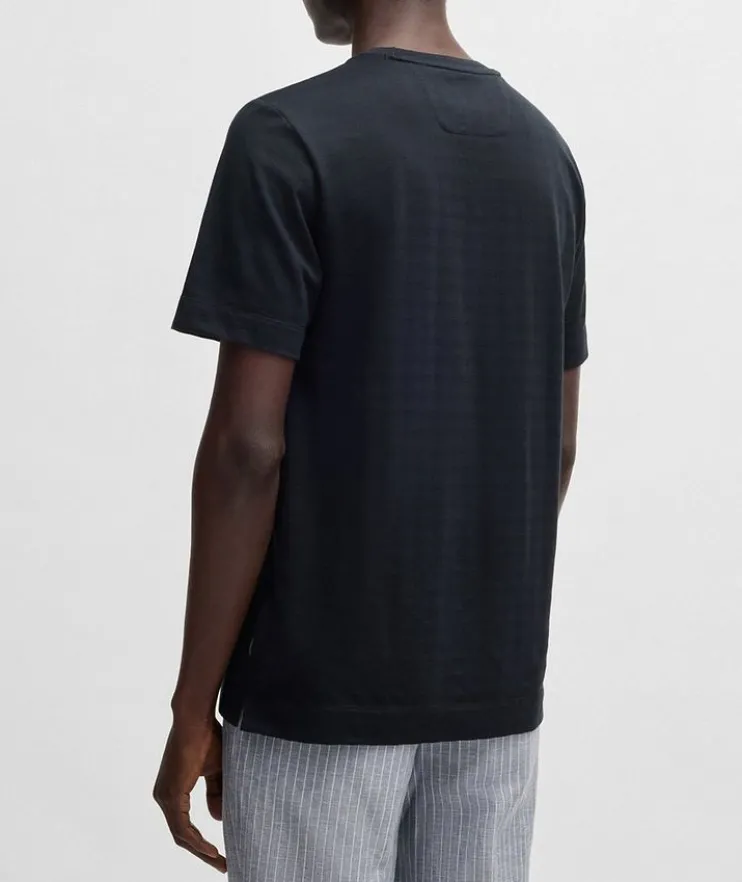 - Featuring a jacquard check, this refined T-shirt is cut to a straight fit in cotton blended with silk.