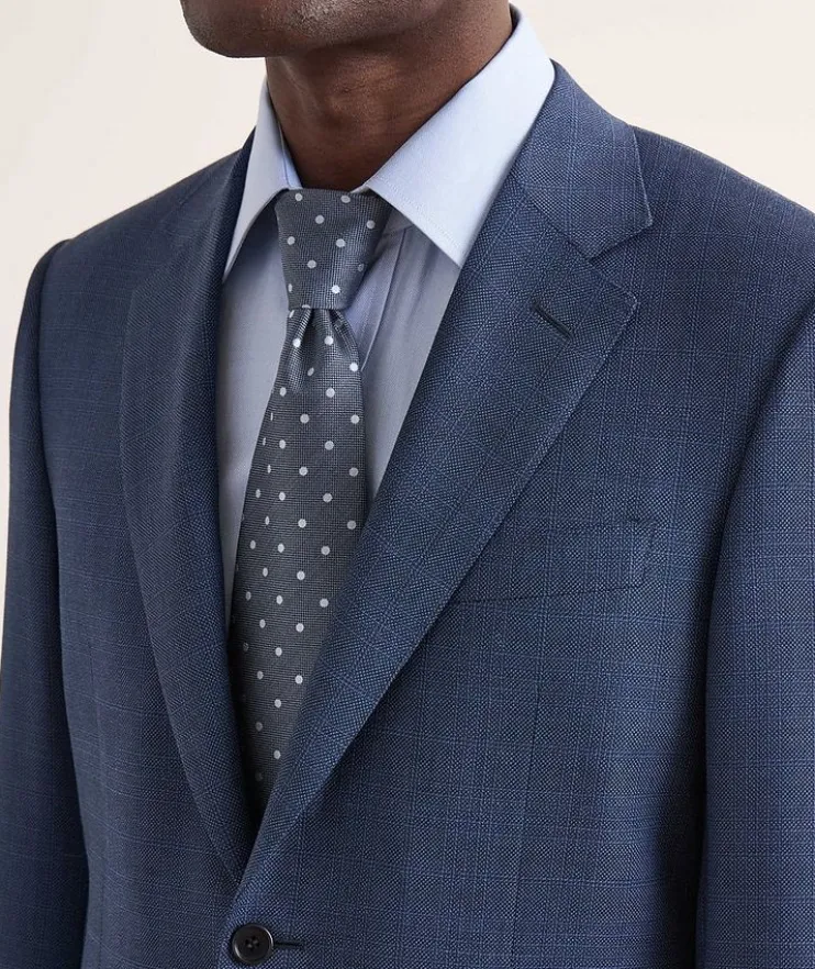 - This suit has been crafted in a slim fit, designed to sit close against the body.