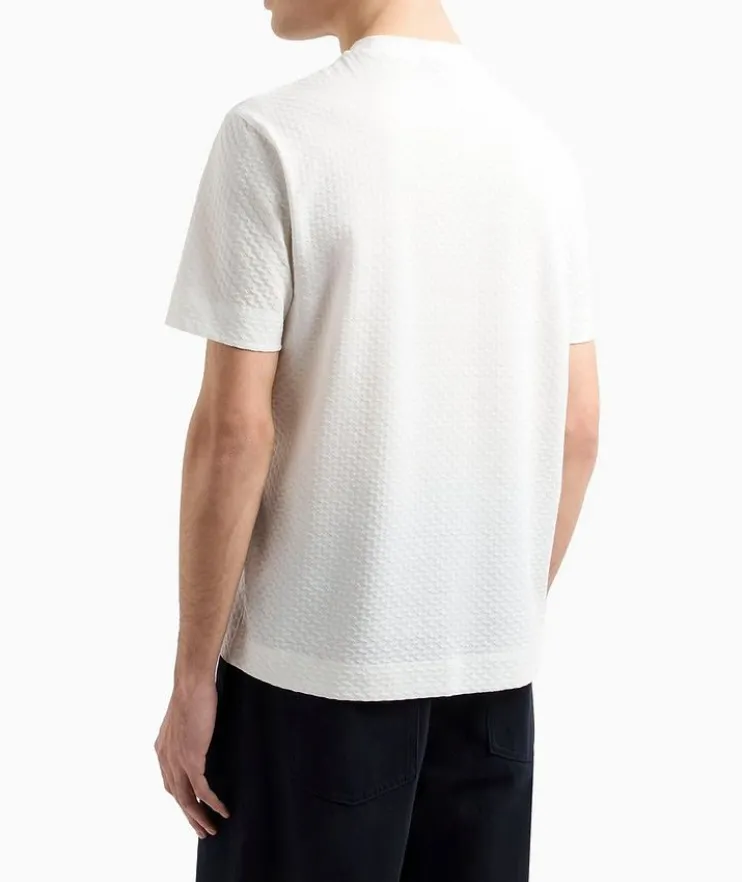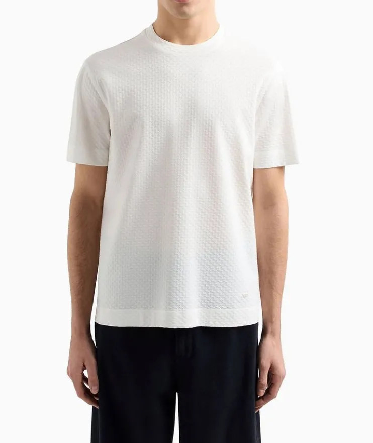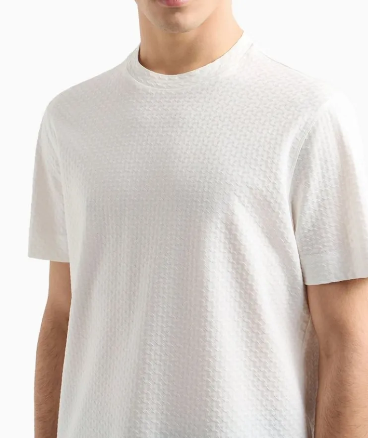 - The perfect addition to your casual collection, this essential jacquard t-shirt is cut from soft jersey cotton and finished with an allover textured basketweave motif.