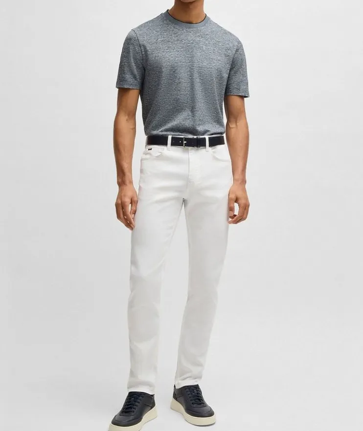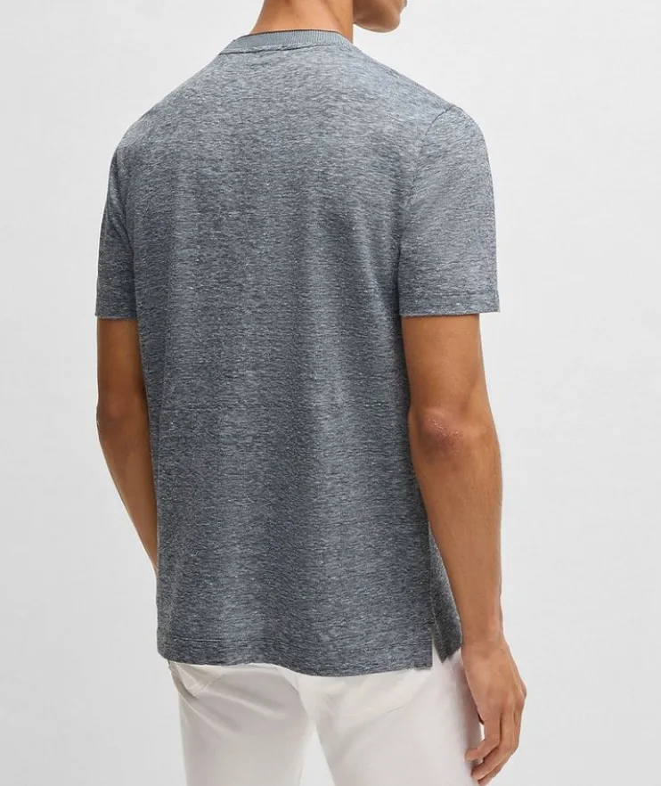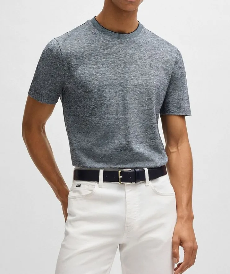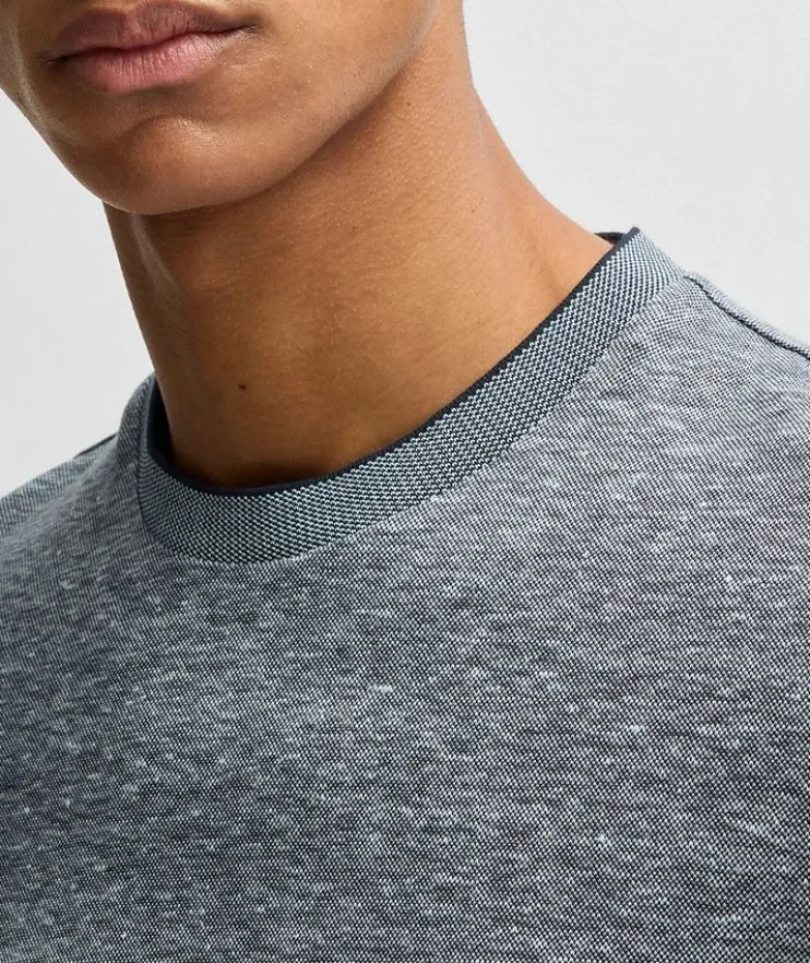 - This versatile crewneck T-shirt is crafted from a blend of breathable cotton and cooling linen, and is easy to style with everything from a formal sport jacket to a casual hooded sweater.