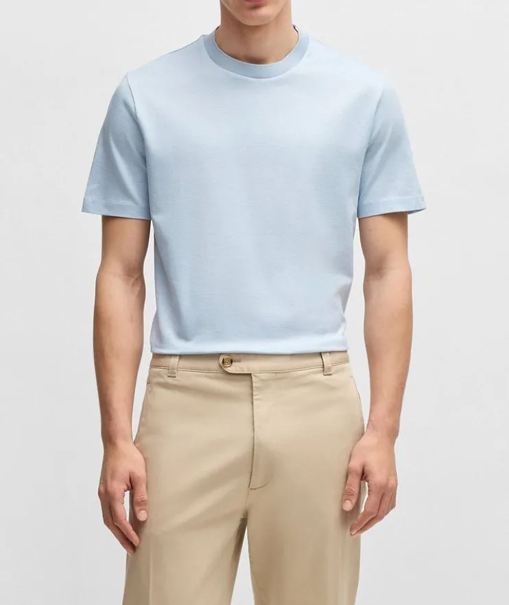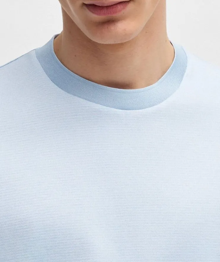 - A sophisticated classic, this crewneck T-shirt is finely crafted from pure cotton with a soft mercerized finish.