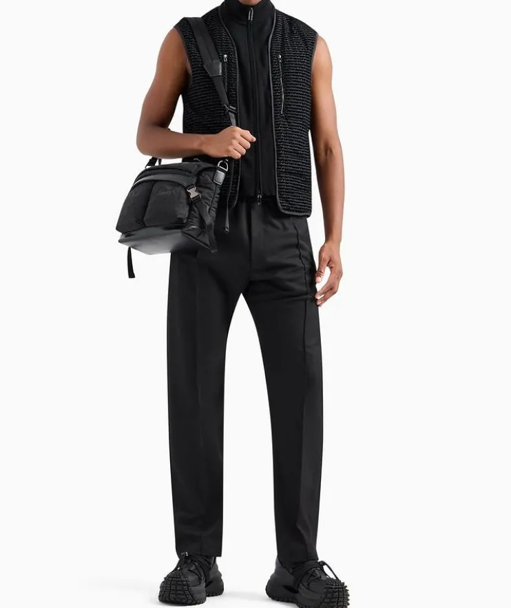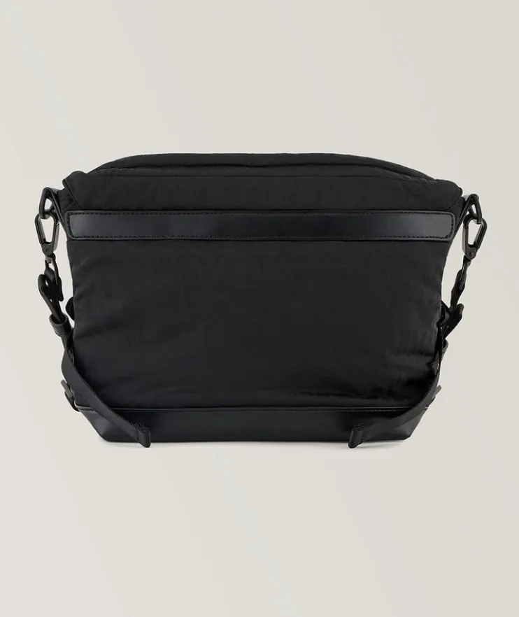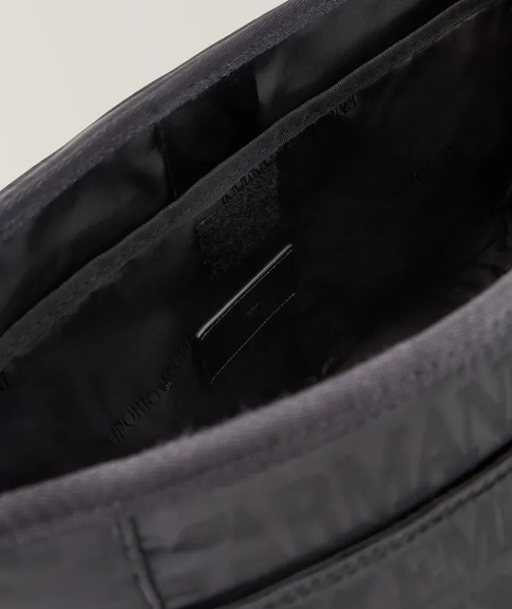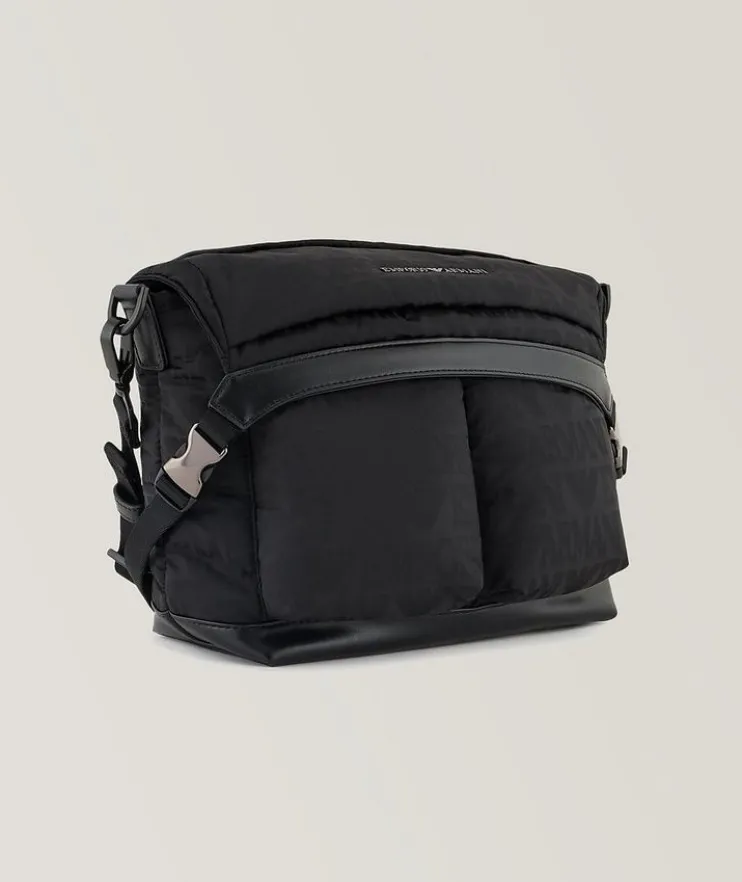 - Emporio Armani’s accessories are a sophisticated addition to your everyday looks, and this crossbody is no exception. Crafted from jacquard-woven nylon texture. Secure your essentials when on the go, while keeping your hands free.