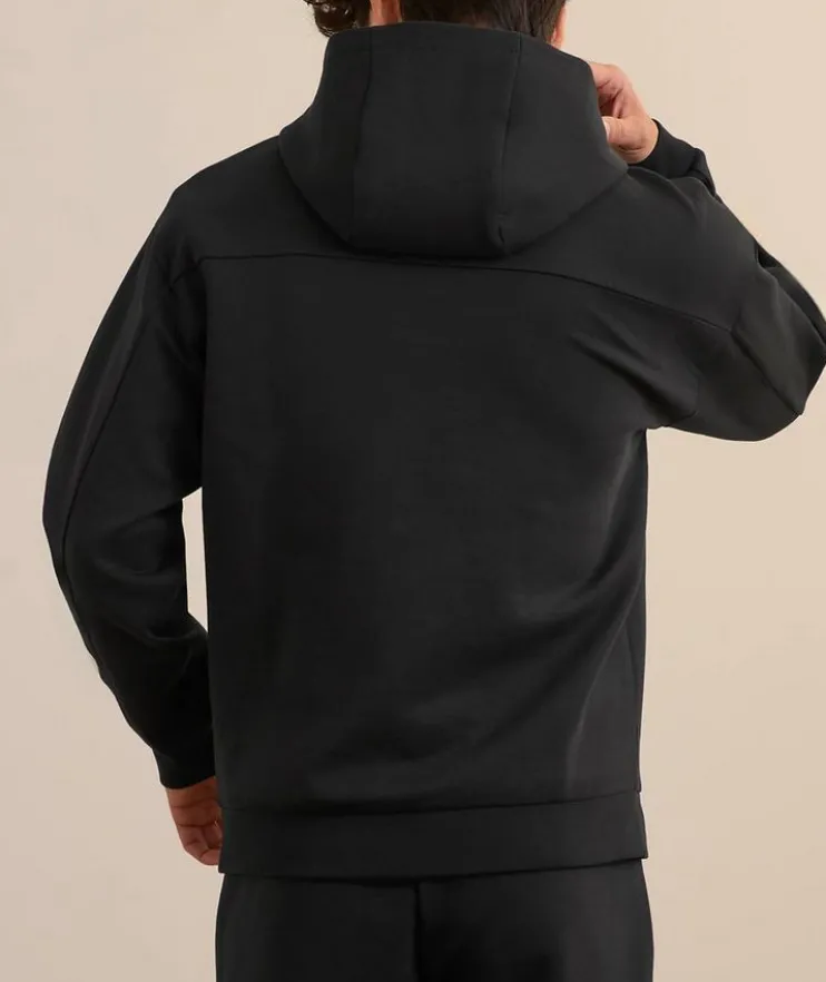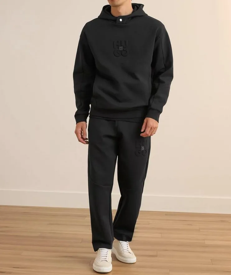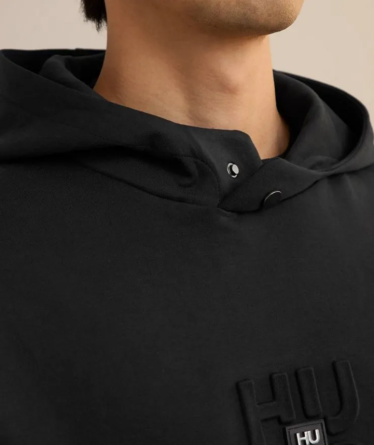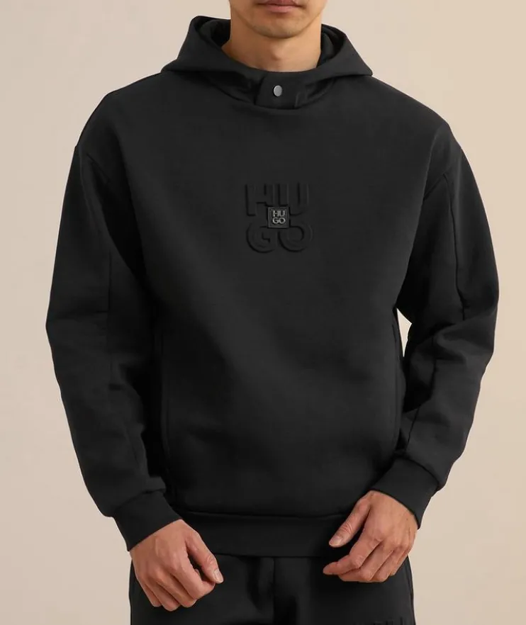 - Constructed in a relaxed fit, this hooded sweater a tonal logo design and subtle side pockets is a must-have for weekend styling.