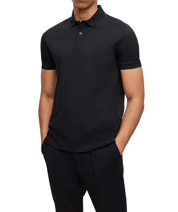- Amplify the boss within you with this sporty polo shirt by BOSS Menswear. Featuring signature tape at the inner collar, this polo shirt is crafted in soft pique fabric and embroidered with a tonal BOSS logo at the left chest. Pair it with jeans and sneakers for an off-duty BOSS aesthetic.
