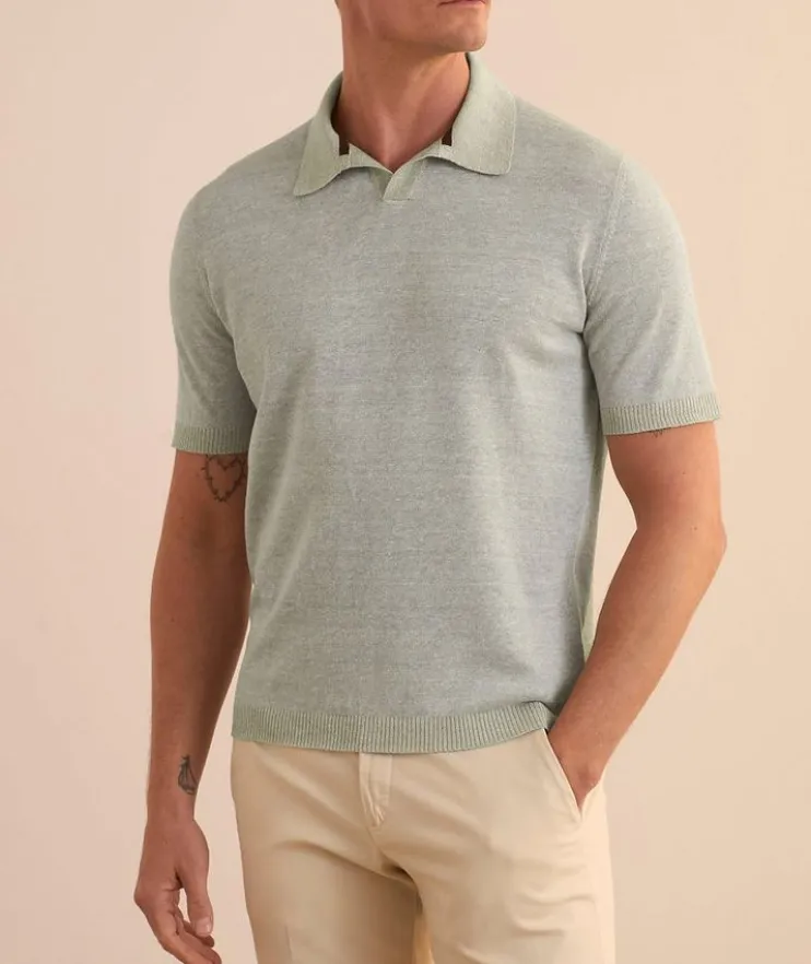 - Fashioned in luxurious silk and cotton blend with an open collar and soft ribbed trim, this lightweight polo with tone-on-tone stripes evokes a minimalist style with timeless appeal.