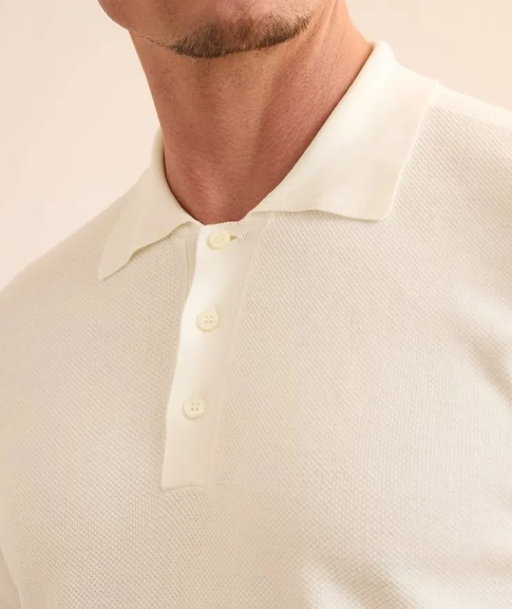 - Refined and casual, this polo is specially treated using artisan processes for a unique garment-dyed finish. A tonal knit front panel adds texture and interest to the classic smart casual style.