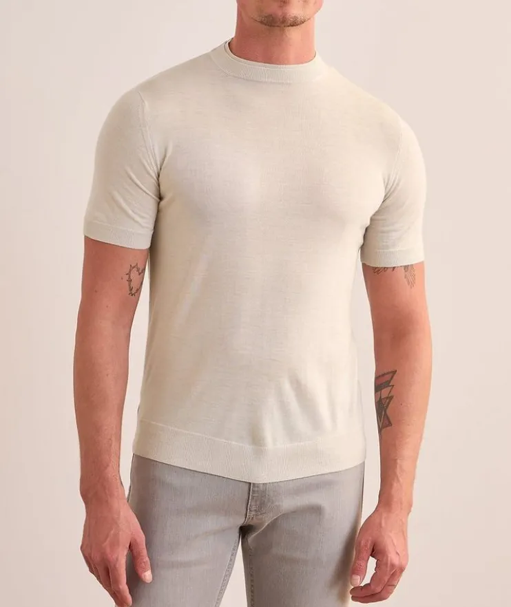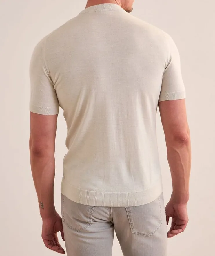 - An elevated basic, this knit T-shirt features tonal tipping detailing at the collar for a layered look without the bulk.