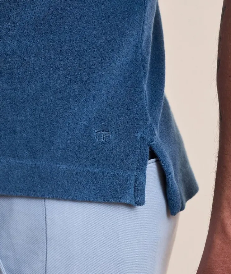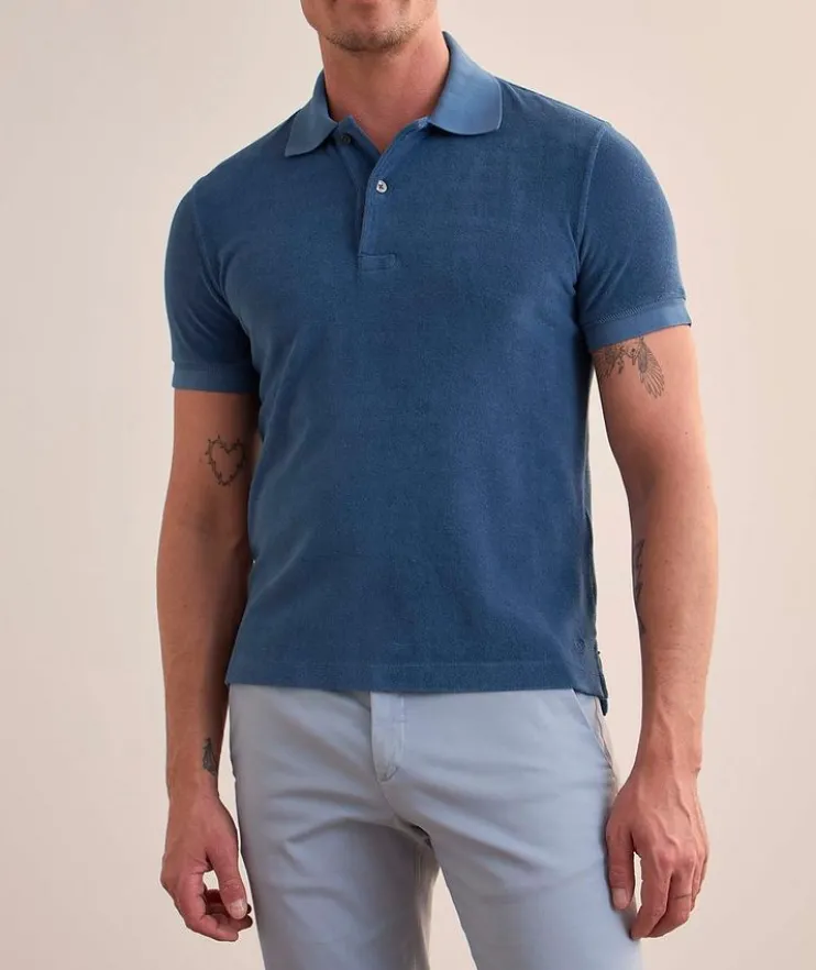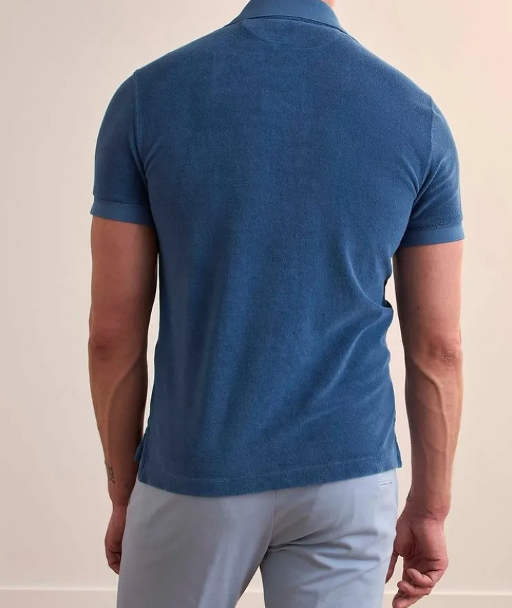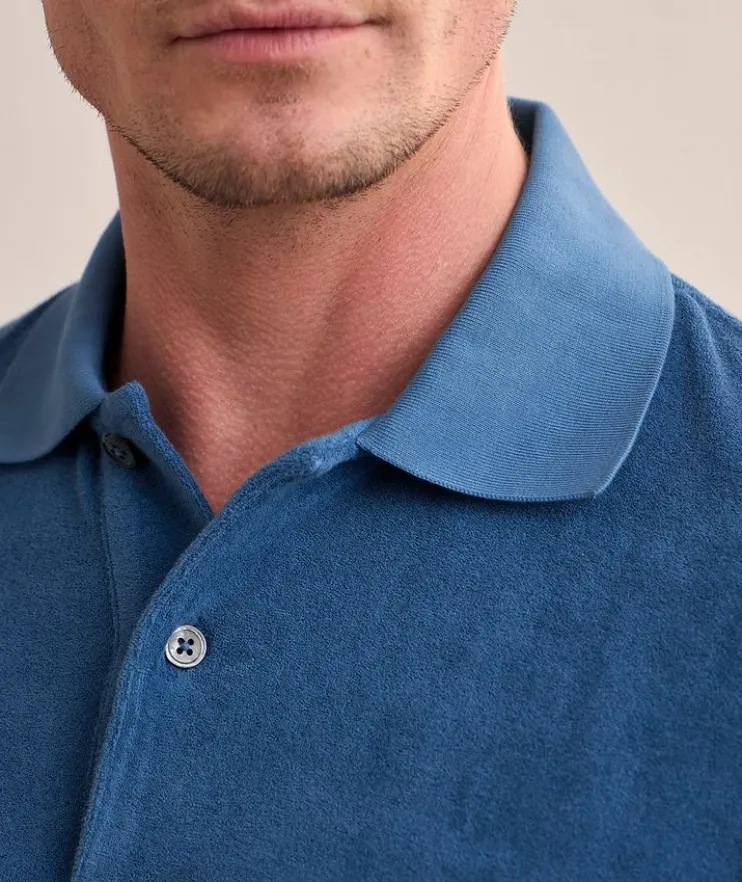- A summer essential, this short-sleeved polo features a towel-inspired texture with contrasting ribbed details for a poolside-ready look.