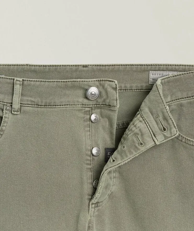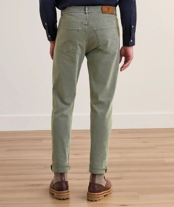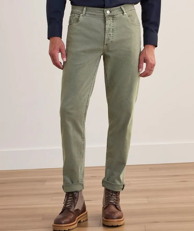 - The seasonal nuances embellish the iconic style of these five-pocket pants, characterized by a lightweight cotton texture enriched with a small percentage of stretch for added comfort. The traditional fit expresses a classic style with a mid-rise waist, fitted naturally around the hip and straight down the leg.