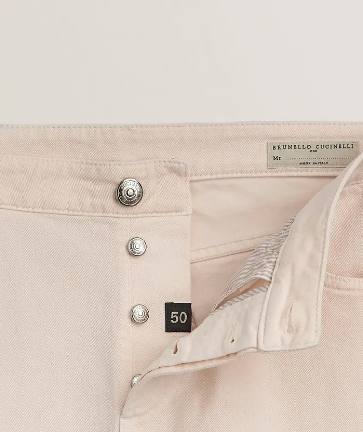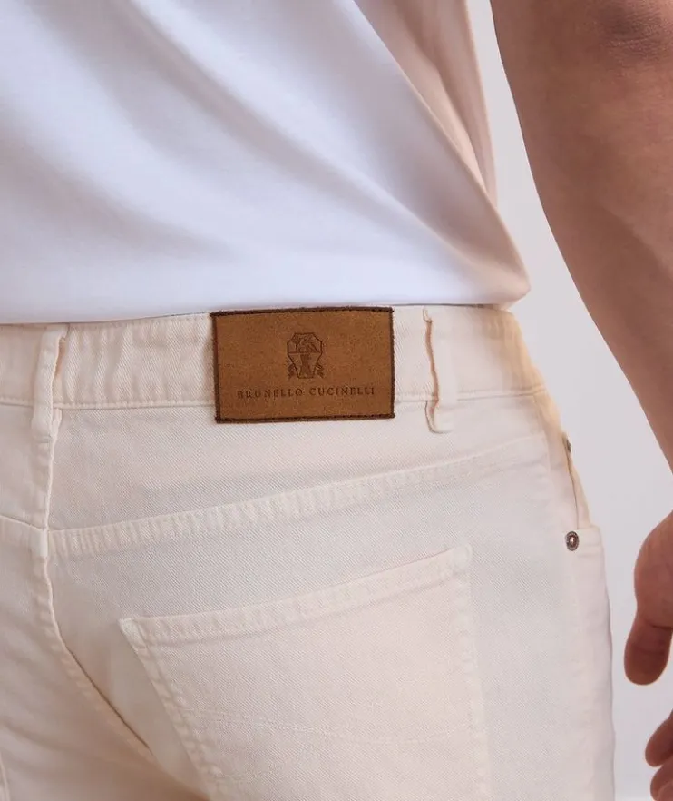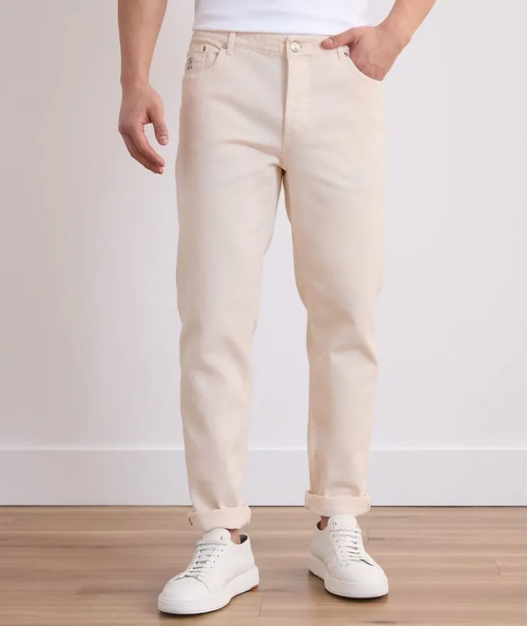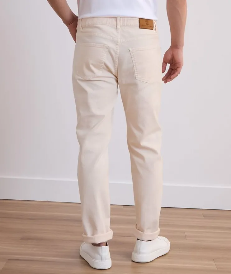 - The seasonal nuances enrich the iconic style of these five-pocket pants, characterized by a lightweight cotton texture enriched with a small percentage of spandex for added comfort. The traditional fit expresses a classic style with a mid-rise waist, fitted naturally around the hip and straight down the leg.
