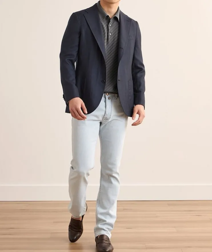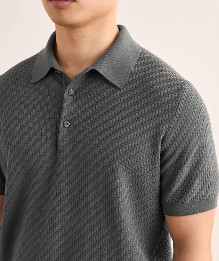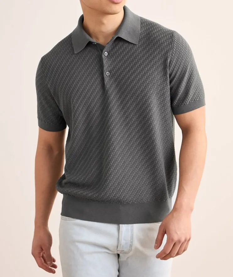 - Crafted from a quality blend of cotton, silk and cashmere, this knit polo is finished with a woven design for visual interest.
