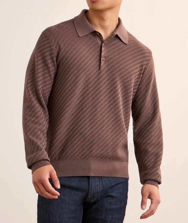 - Beautifully crafted from a luxurious blend of cotton, silk and cashmere, this on-trend polo feature’s the brand’s Trama-weave knit, a tone-on-tone pattern that mimics the San Pietrini, the cobbled stones characterizing the streets of Rome. Finished with ribbed trim for a refined look.