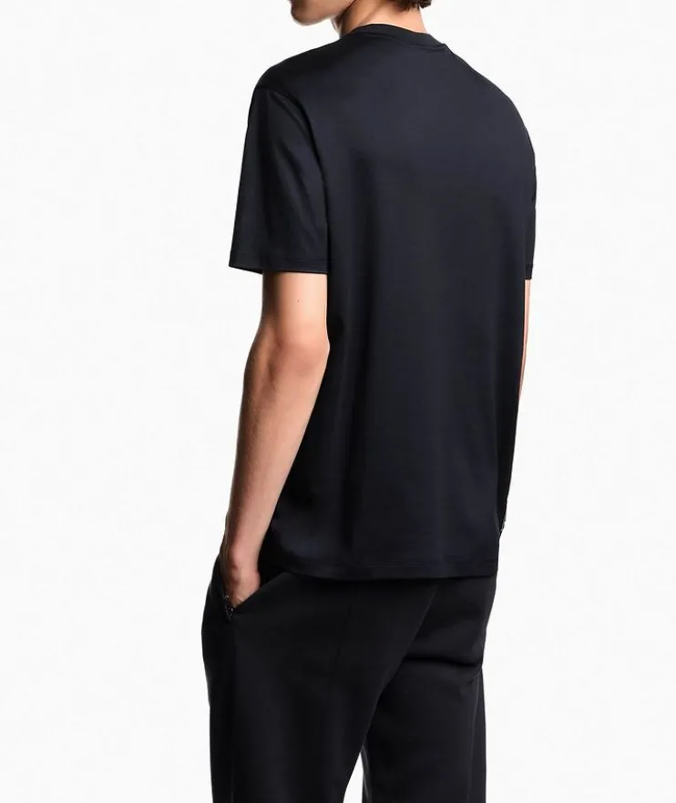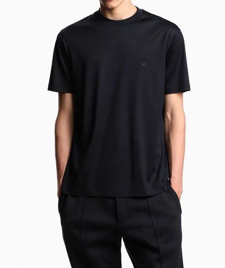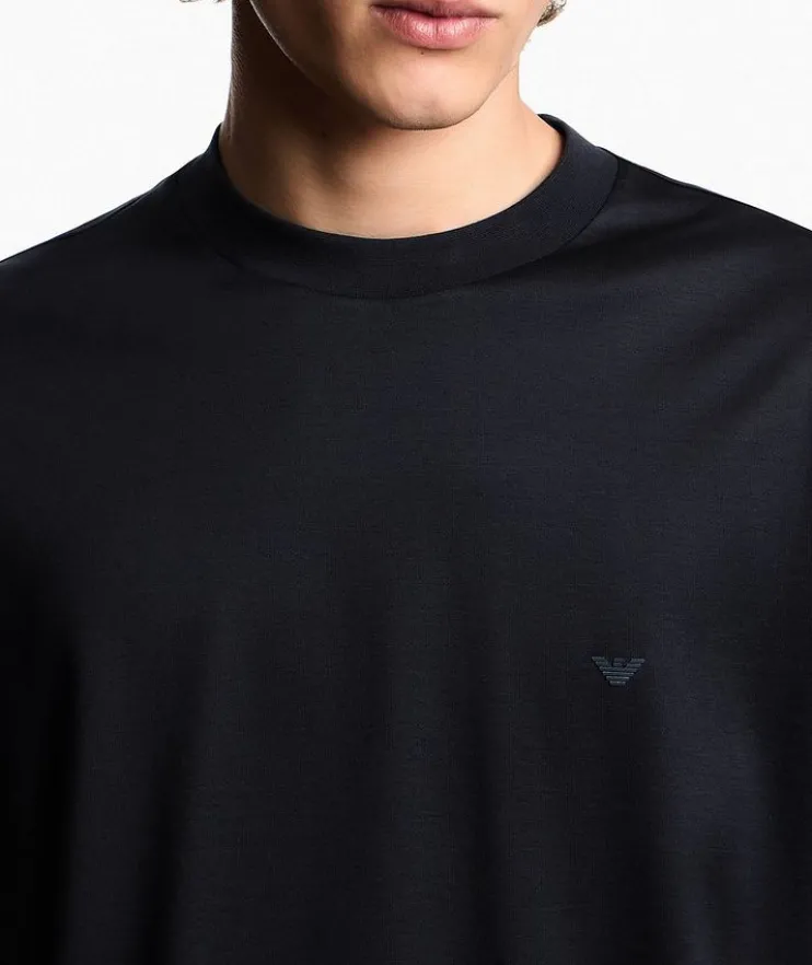 - From the Travel Essentials collection. This everyday crewneck is crafted from a soft cotton and lyocell blend jersey and detailed with and embroidered micro-eagle logo on the chest to elevate the style with distinction.