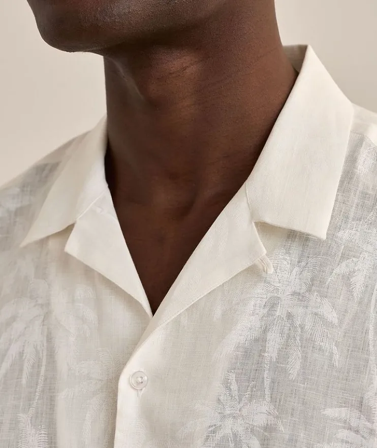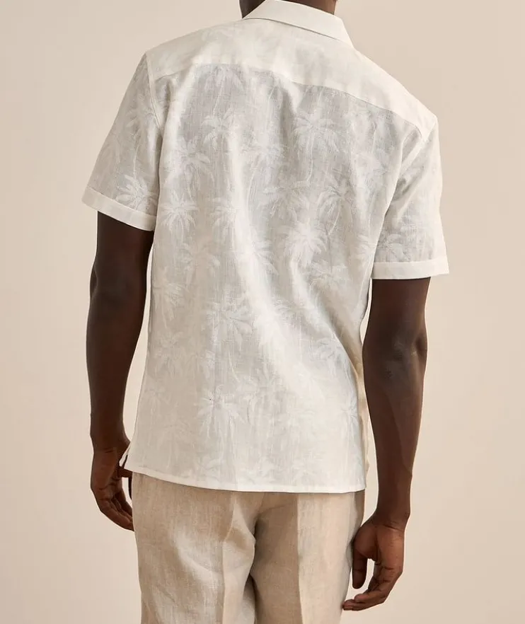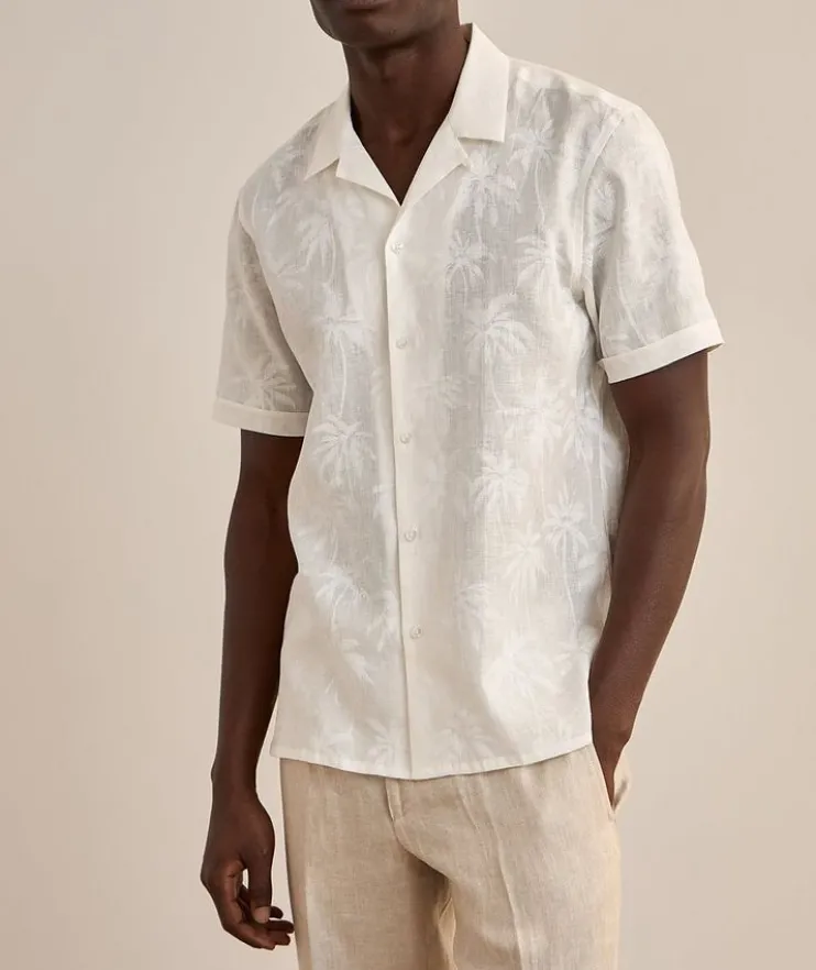 - The perfect addition to your warm weather wardrobe, this easy to wear camp shirt is cut from highly breathable linen and finished with an allover tonal palm tree print.