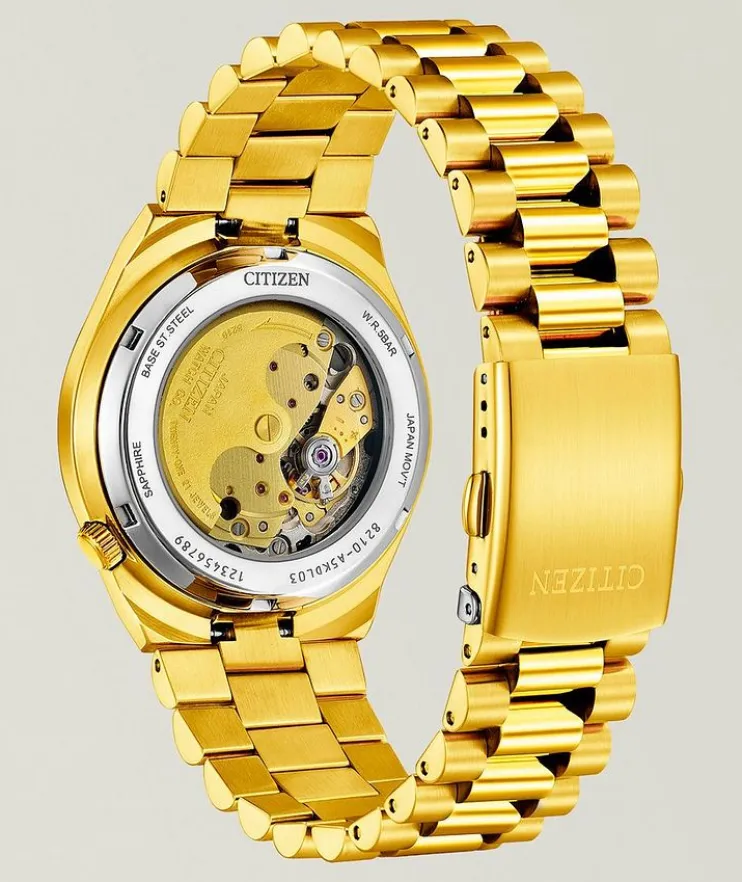 - A sophisticated design with gondtone stainless steel case and matching bracelet, this style is powered by an automatic movement and is ready to wear on any occasion. Underneath an anti-reflective sapphire crystal, this sporty timepiece makes use of a sunray green dial, with a 3 o’clock date window and contrasting goldtone details adding to its classic aesthetic.