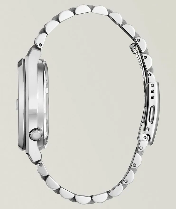 - A sophisticated design featuring a silvertone stainless steel case and matching bracelet, this style is powered by an automatic movement and is ready to wear on any occasion. Underneath an anti-reflective sapphire crystal, this sporty timepiece makes use of a sunray green dial, with a 3 o’clock date window and contrasting silvertone details adding to its classic aesthetic.