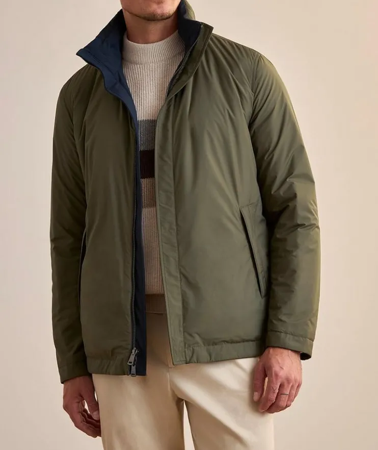 - A reversible construction combining two styles for endless possibilities, this jacket is crafted from Typhoon® Platinum: a high-performance fabric with an ultra-luxurious tactile feel. One side boasts an understated design with welt pockets, whilst the other is equipped with chest pockets, maxi flap pockets and visible buttons.