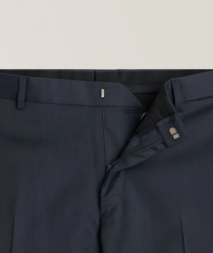 - Combining impeccable tailoring with timeless style, these sophisticated dress pants are crafted from wool with subtle stretch and feature a tapered leg with crease details to create a flattering silhouette. The hems of this garment are unfinished. Alterations are needed to adjust the leg length.