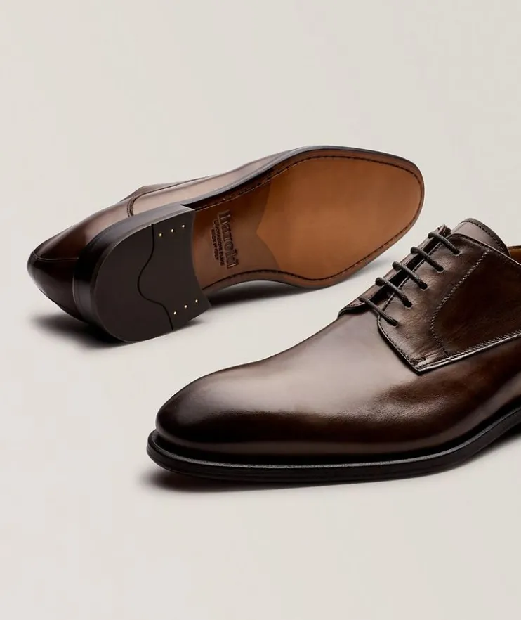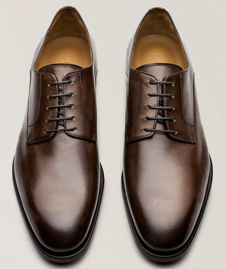 - Smart and polished for any occasion, these sleek leather derbies strike a delicate balance between sophisticated style and modern practicality.